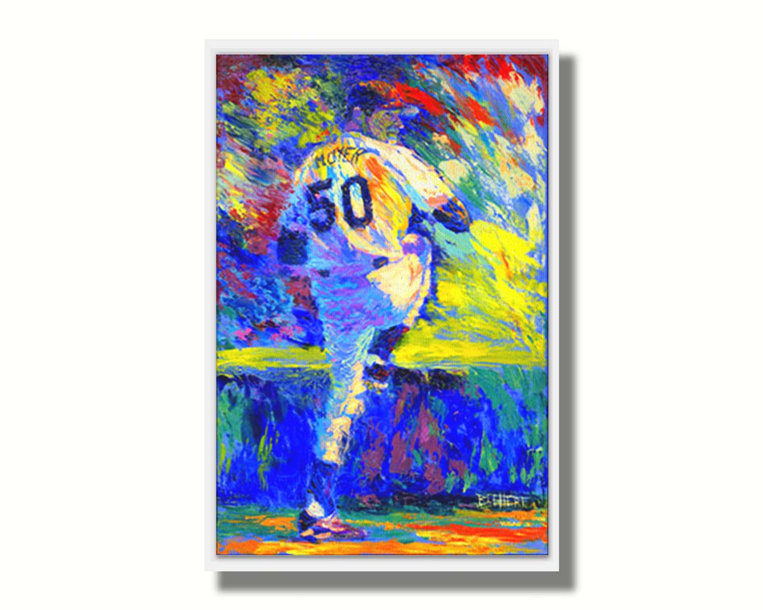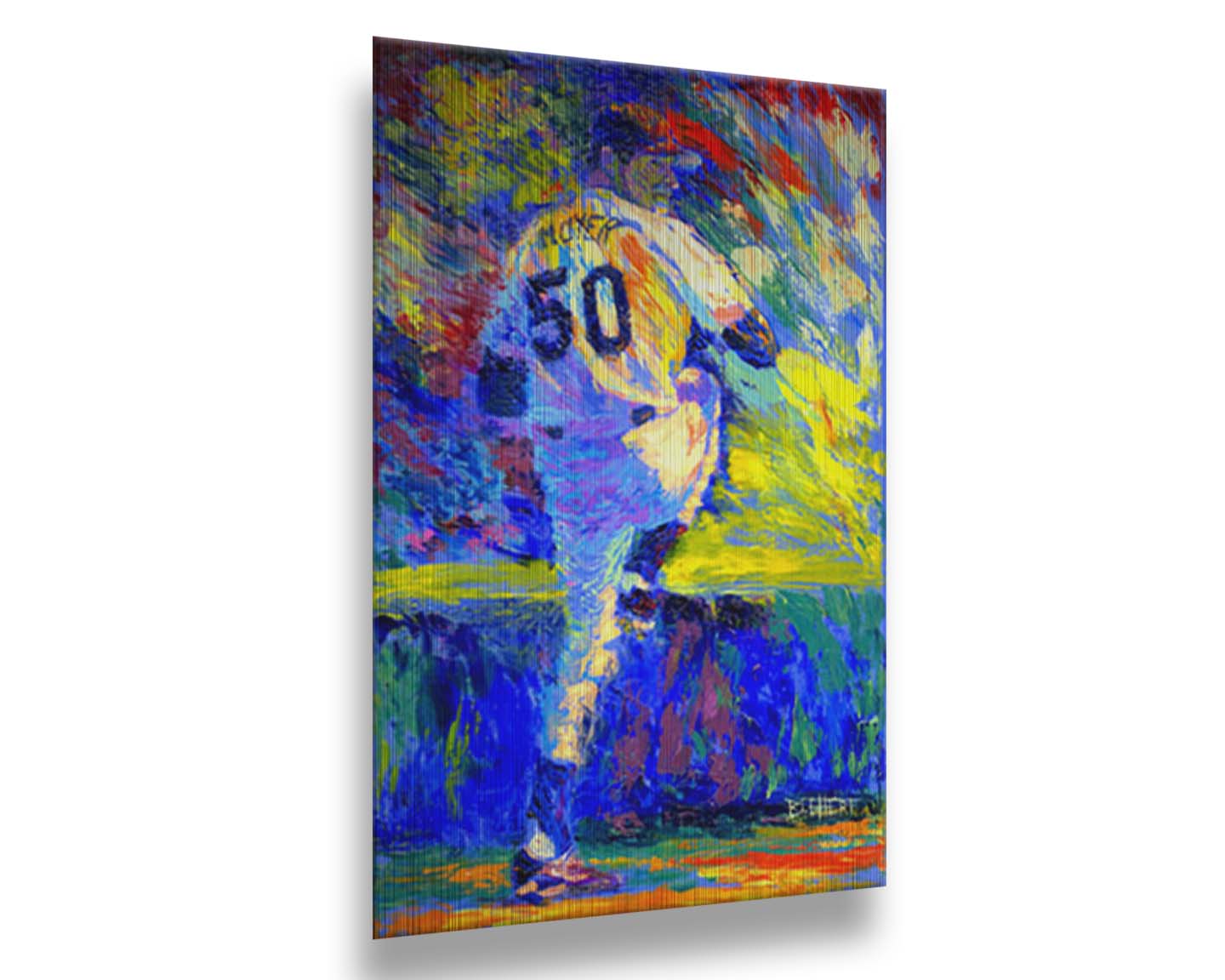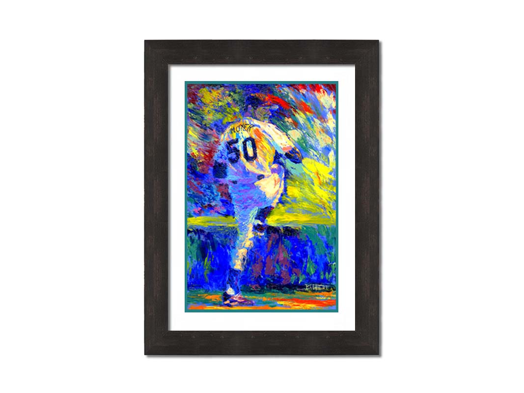 Experience the legendary Jamie Moyer in action with this dynamic portrait by acclaimed artist Robert Blehert. Bold, unblended brushstrokes create a vibrant energy that perfectly embodies Moyer's Hall of Fame pitching prowess. Each high-quality print is proudly made in the USA, offering baseball fans and art collectors alike a standout piece that celebrates one of the Mariners' greatest icons. "Special Delivery" makes a perfect statement piece for any sports enthusiast's home or office.
