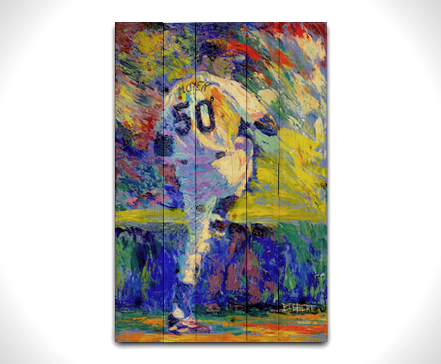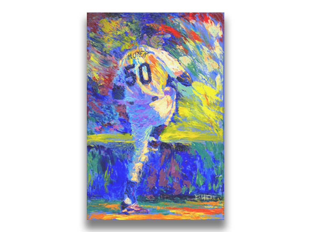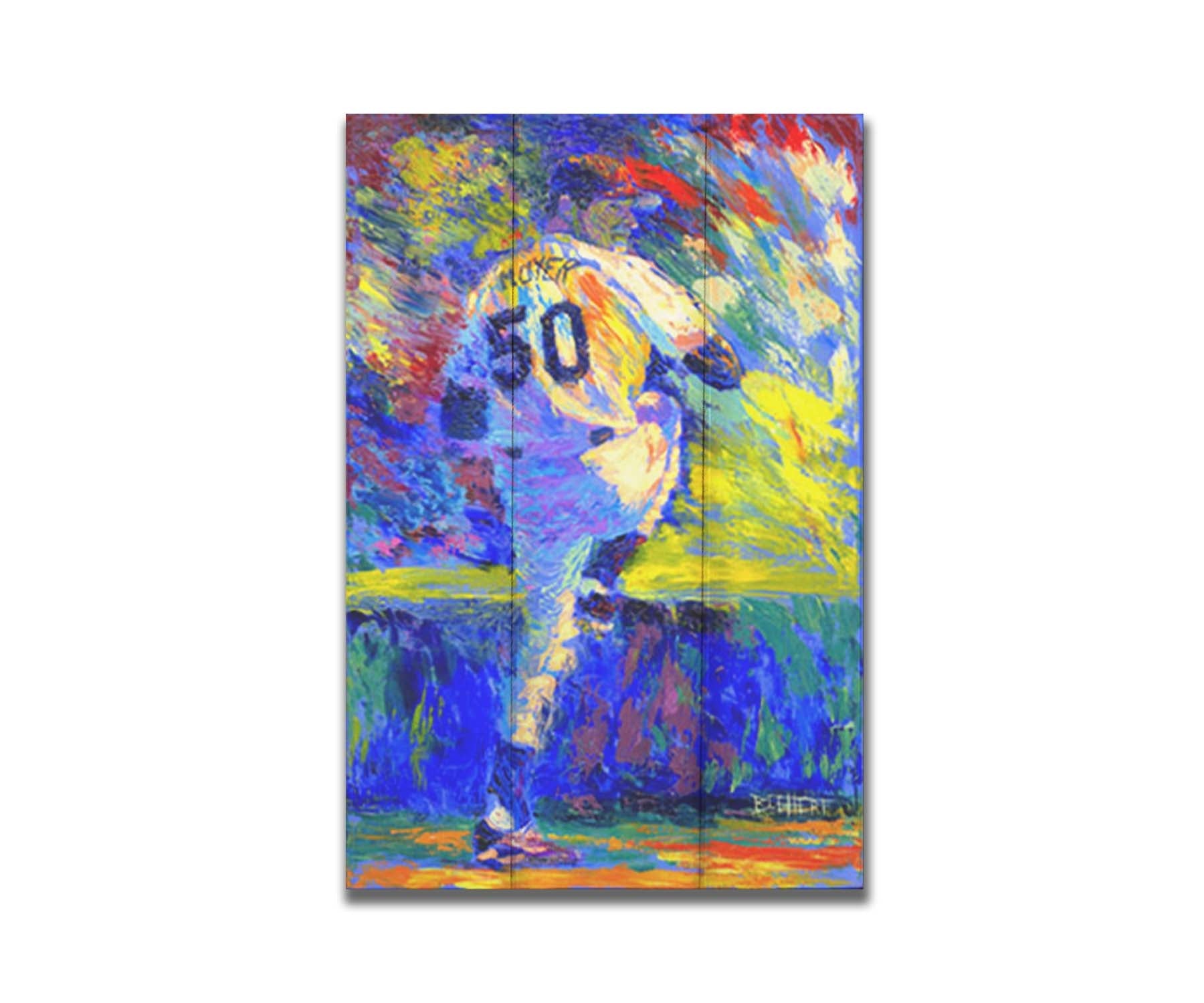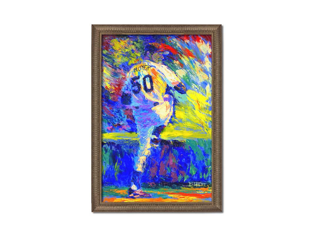 Experience the legendary Jamie Moyer in action with this dynamic portrait by acclaimed artist Robert Blehert. Bold, unblended brushstrokes create a vibrant energy that perfectly embodies Moyer's Hall of Fame pitching prowess. Each high-quality print is proudly made in the USA, offering baseball fans and art collectors alike a standout piece that celebrates one of the Mariners' greatest icons. "Special Delivery" makes a perfect statement piece for any sports enthusiast's home or office.